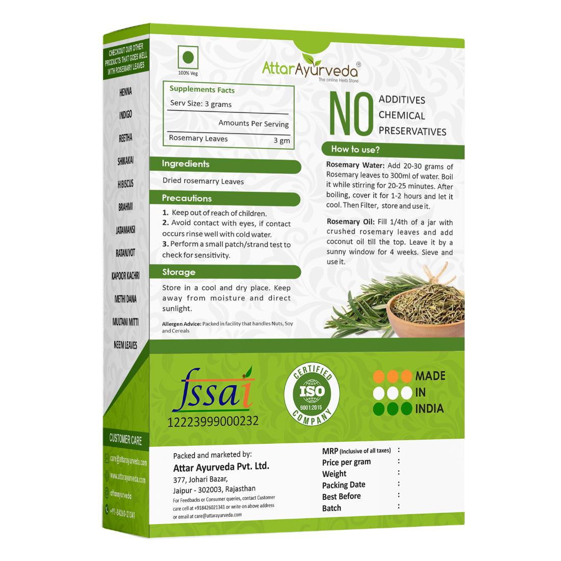 Enhance your well-being and beauty with the reliable quality of dried rosemary leaves from Attar Ayurveda. Experience the natural benefits and feel the difference!